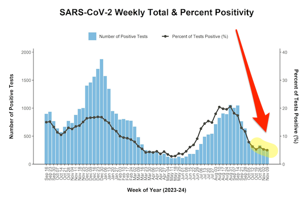 [11] Deaths low, positivity down.