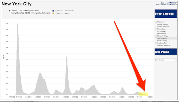 [6] (Hospitalization: CDC). Actually improved; it’s now one of the few charts to show the entire course of the pandemic to the present day.