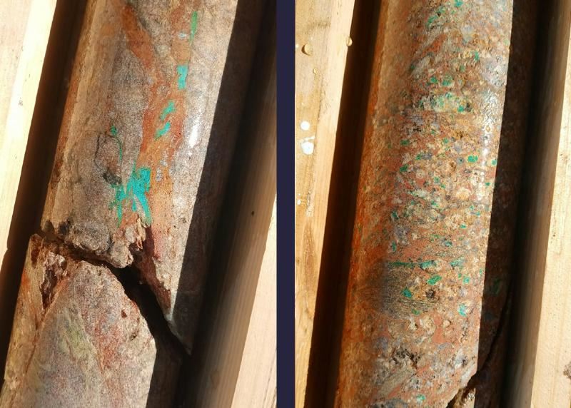 Fig.1 First drill core from recently commissioned diamond drilling rig with observable copper mineralisation