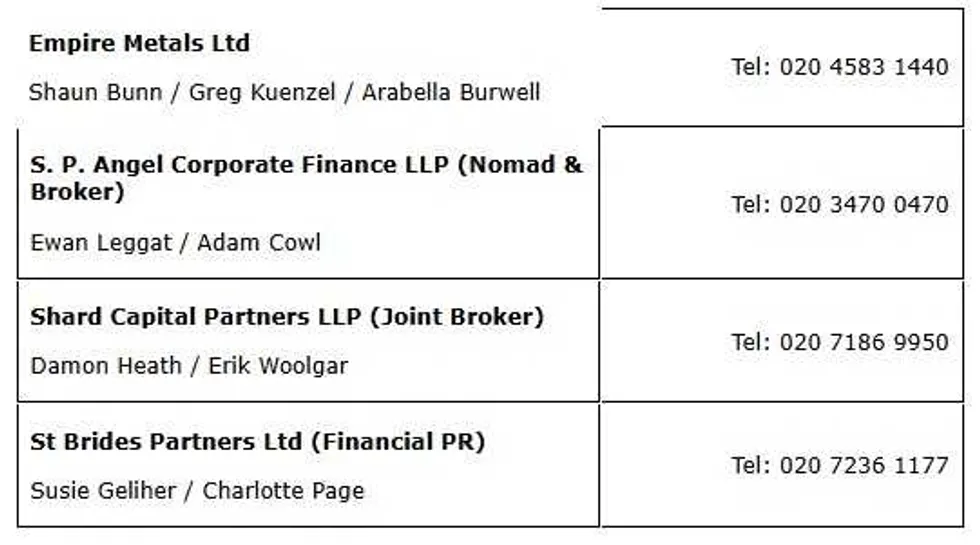 Click here to connect with Empire Metals Limited (LON:EEE)(OTCQX:EPMLF), to receive an Investor Presentation