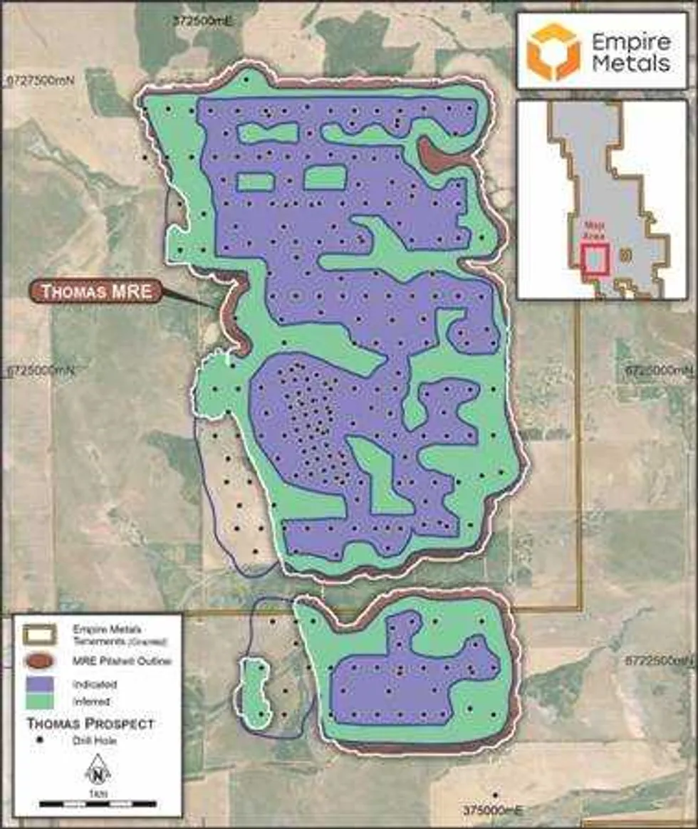 - The MRE also includes a significant Indicated Resource category, predominantly at the Thomas deposit, of: