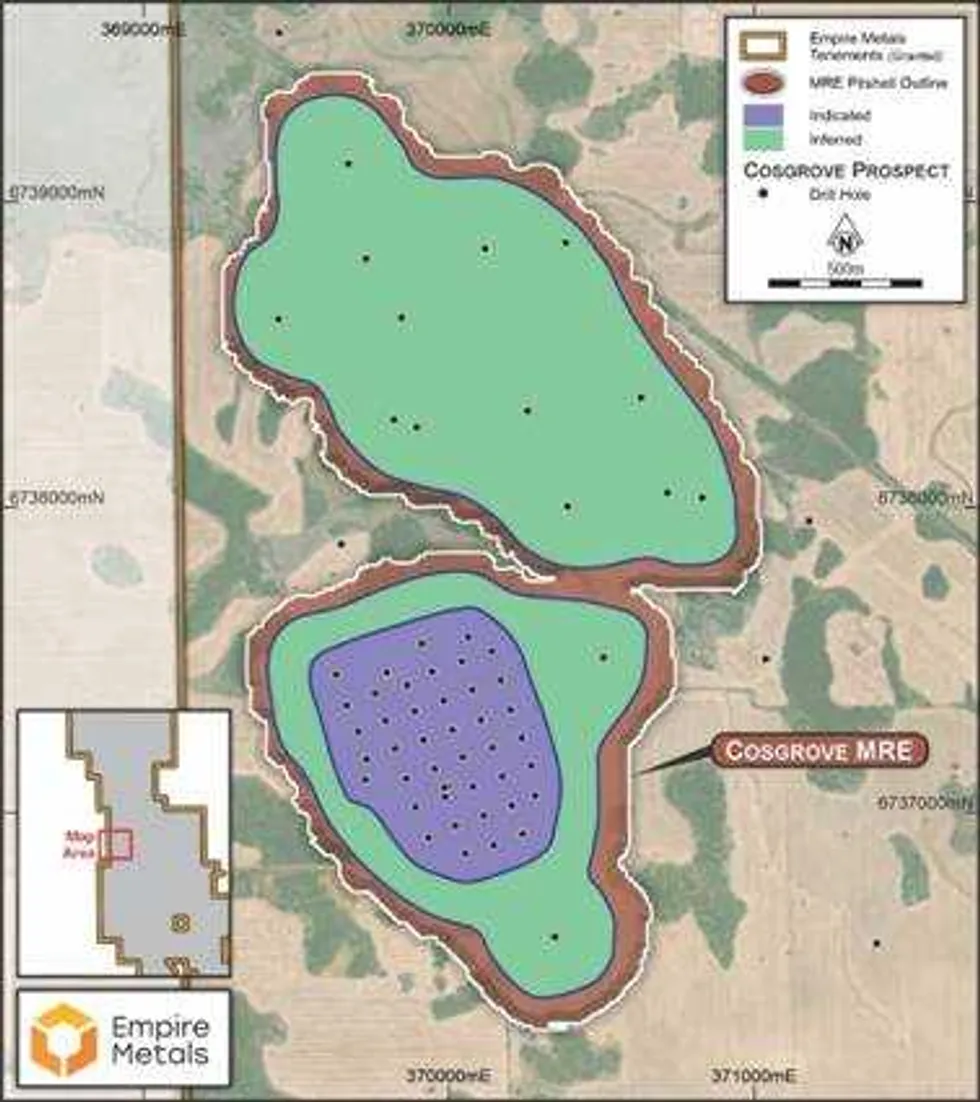 Empire Metals Limited, the AIM-quoted and OTCQX-traded exploration and development company, is pleased to report a maiden Mineral Resource Estimate (‘MRE’) at its Pitfield Project in Western Australia (‘Pitfield’ or the ‘Project’). The MRE is reported in accordance with the Joint Ore Reserves Committee (‘JORC’) 2012 Code (The Australasian Code for Reporting of Exploration Results, Mineral Resources, and Ore Reserves) and includes both Indicated and Inferred categories.