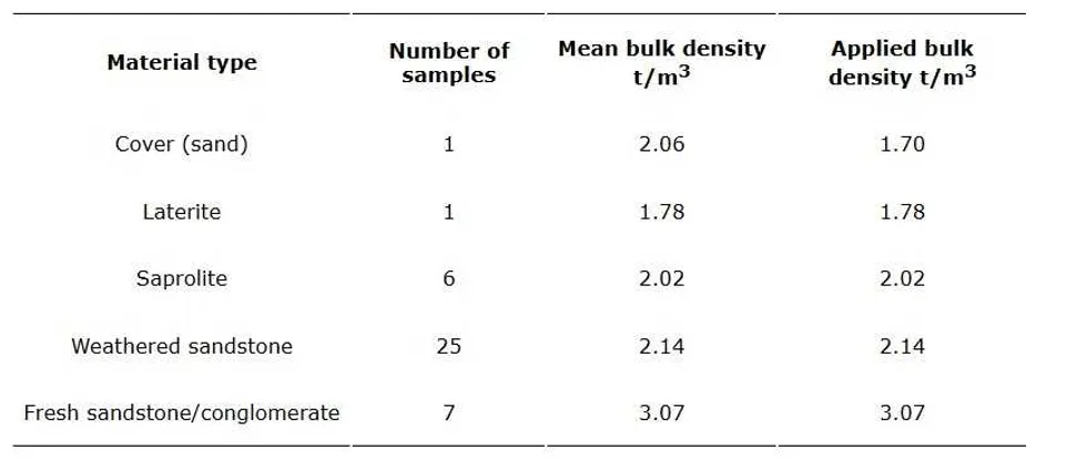 Table 3: Bulk densities applied at Cosgrove and Thomas deposits