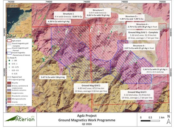 Aterian plc (AIM: ATN), the Africa-focused critical metals exploration company, is pleased to announce the commencement of a ground-based magnetic geophysical survey at its 100%-owned Agdz Copper-Silver Project (“Agdz” or the “Project“) in the Kingdom of Morocco (“Morocco“).