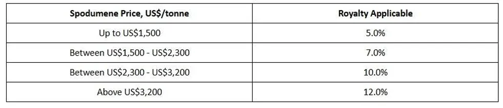 The Company notes that, following the expiration of the 21-sitting-day review period, a new Legislative Instrument, Minerals and Mining (Royalty) Regulations, 2025, which outlines the following sliding scale in relation to royalty rates for lithium projects in Ghana, has become legally binding