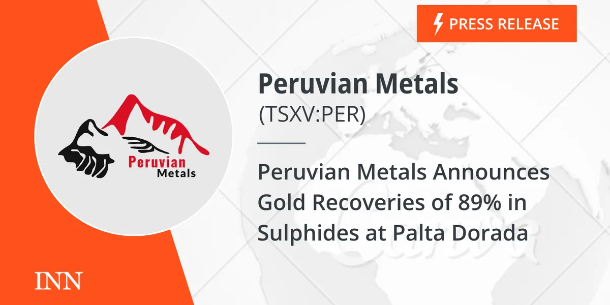 Peruvian Metals Corp – (TSX: PER) (OTC Pink: DUVNF) (“Peruvian Metals” or the “Company”) is pleased to announce updated metallurgical results on both oxide and sulphide Au-Ag material on its 100% owned Palta Dorada Gold-Silver property (“Property”) located in the Ancash department in Northern Peru. New metallurgical work on gold recoveries in both the oxide and sulphide material shows recoveries exceeding 80%. The new metallurgical work was conducted on the main San Juan vein where a rehabilitated historic 53-metre-deep shaft (“shaft”) provided good exposure to both the sulphides and oxides on this main mineralized structure.