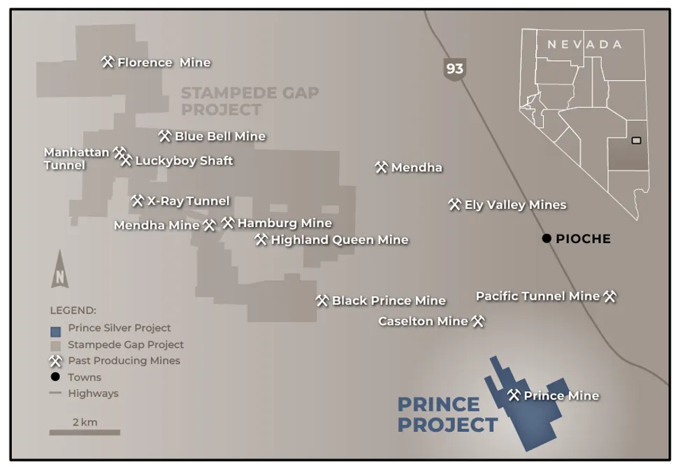 Prince Silver Corp. is a silver exploration company advancing its flagship Prince Silver Project in Nevada, USA, featuring a near-surface, historically drilled deposit that remains open in all directions. The Company also holds an interest in the Stampede Gap Project, a district-scale copper-gold-molybdenum porphyry system located 15 km north-northwest, highlighting Prince Silver’s focus on high-potential, strategically located exploration assets.