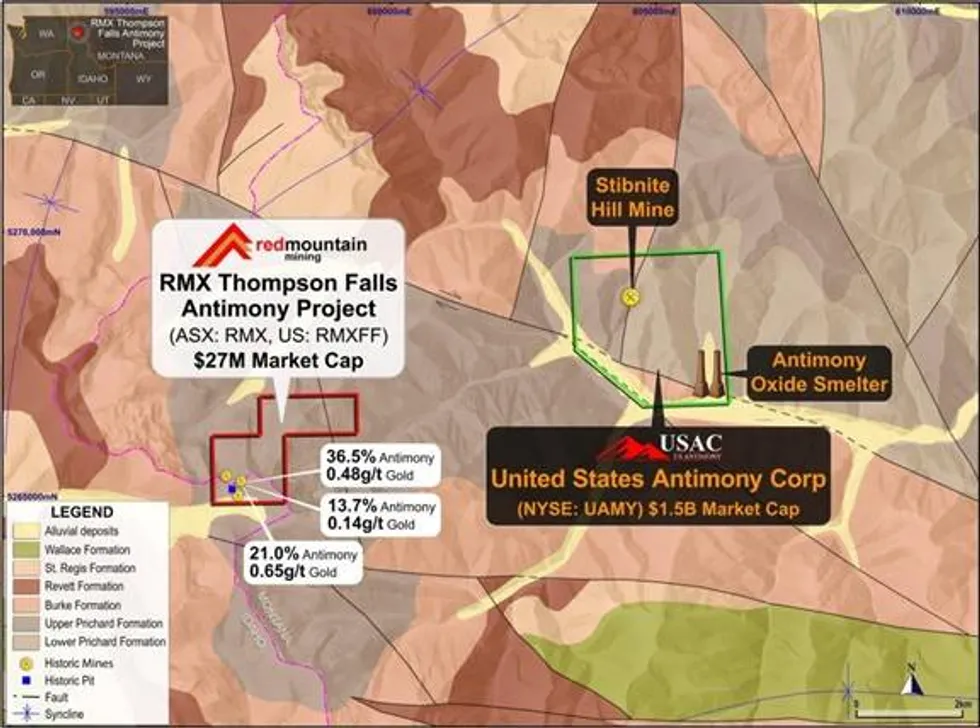 Red Mountain acquired the Thompson Falls Antimony Project on 5 February1, next to the only operating antimony smelter in the USA, US Antimony Corporation’s (NYSE: UAMY; Market Cap ~AU$1.5 billion) Thompson Falls Smelter and UAMY’s Stibnite Hill Mine in Montana (Figure 1).