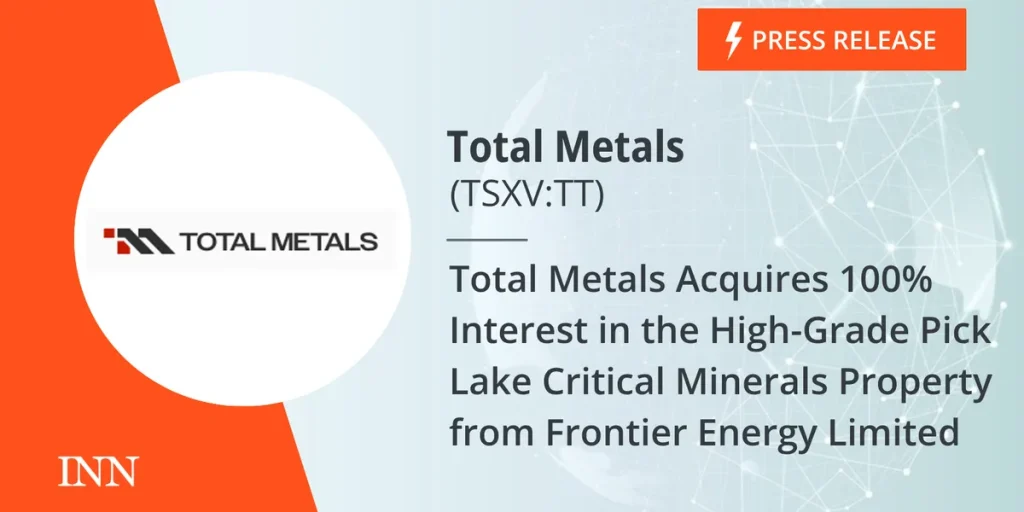 Total Metals Corp. (“Total Metals” or the “Company”) (TSX-V: TT) (OTCQB: TTTMF) (FSE: O4N) is pleased to announce that it has acquired a 100% interest (the “Acquisition”) in the mineral rights underlying the Pick Lake Critical Minerals Property (the “Project”) from Frontier Energy Limited (ASX: FHE) (“Frontier”) and Frontier’s wholly owned subsidiary, Pick Lake Mining Limited (“Pick Lake”). The Acquisition was completed on a purchase and sale agreement dated April 15, 2026 (the “Purchase Agreement”).
