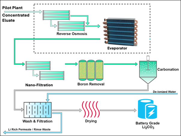 • The nanofiltration stage of the process will utilise an advanced membrane developed by DuPont Water Solutions to maximise impurity removal and lithium recovery.