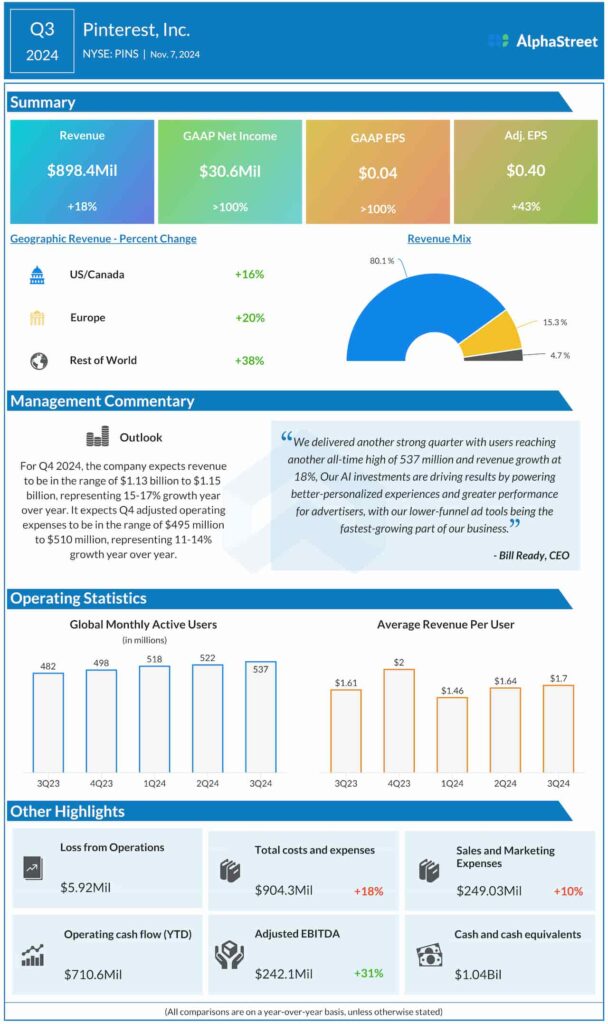 Pinterest reports double-digit growth in Q3 2024 revenue and profit