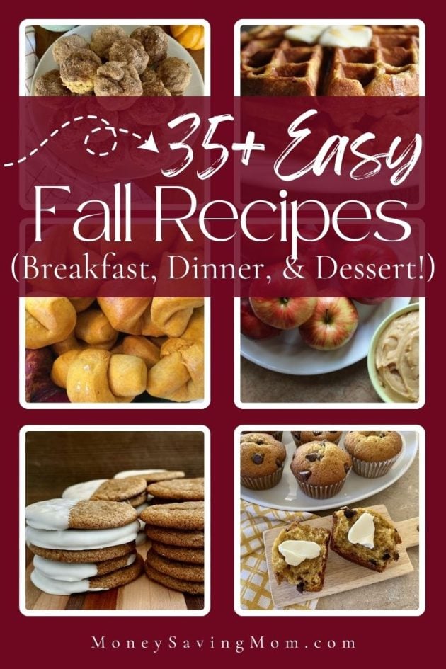 If you’re looking for a few easy fall recipes to try, check out this list of more than 35 delicious fall dinner, dessert, and breakfast recipes! These are all simple, frugal, and delicious! (Don’t miss these 10 comforting fall soups, too!)