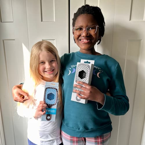 Sarah here – HSN sent me this set to try out and I am SO IMPRESSED! I have two daughters with very different hair texture and it works SO WELL to detangle both types of hair.