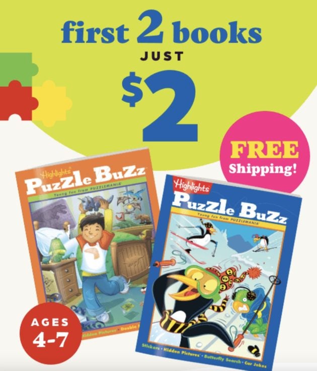 You can currently get two Highlights Puzzle Buzz Activity Books for $2 + free shipping! Here’s how: